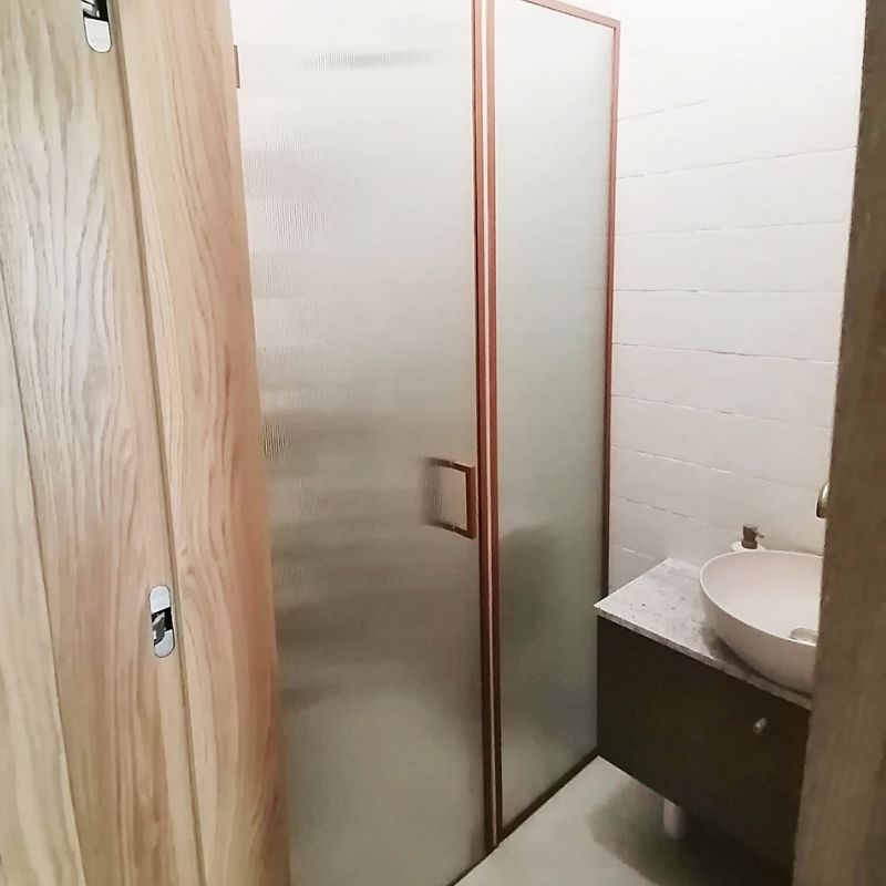 Kabina prysznicowa z drzwiami na zawiasach, wykonana w wybranym kolorze z palety RAL, to połączenie nowoczesnego designu z wysoką funkcjonalnością. Ryflowane szkło zapewnia półprzezroczysty efekt, który zwiększa prywatność, a jednocześnie przepuszcza światło. System zawiasowy umożliwia wygodne otwieranie, a stalowa konstrukcja w dowolnym kolorze pozwala dopasować kabinę do stylu łazienki – od klasycznego po industrialny. Idealna do wnętrz, w których liczy się estetyka i trwałość.