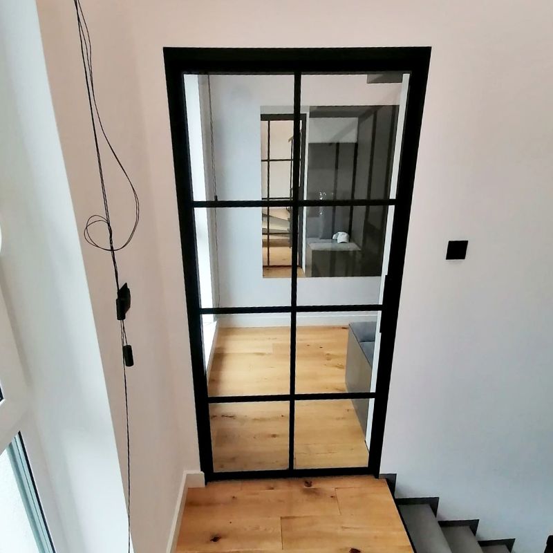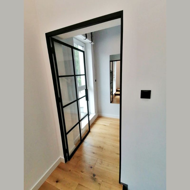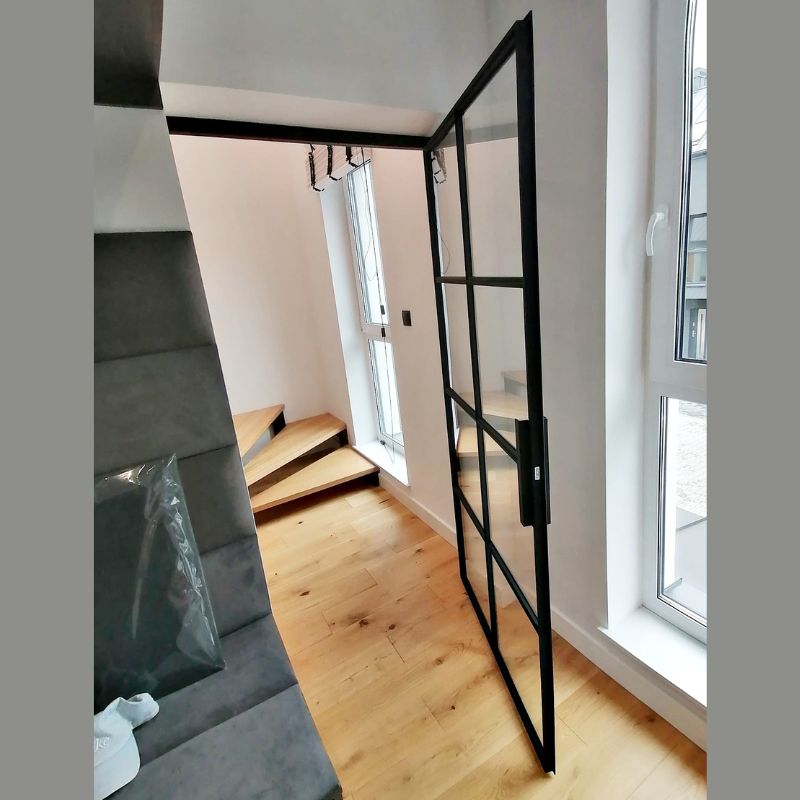 Klasyczne drzwi loftowe ze szprosami i szkłem przezroczystym