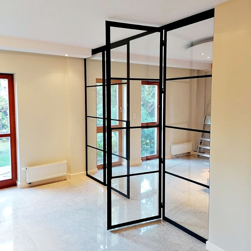 Drzwi loftowe z dwiema bocznymi ściankami to propozycja dla osób, które cenią elegancję i nowoczesny charakter aranżacji wnętrz. Konstrukcja wykonana w klasycznym czarnym macie wyróżnia się ponadczasową estetyką i doskonale komponuje się zarówno z minimalistycznymi, jak i industrialnymi przestrzeniami. Przezroczyste szkło bezpieczne zapewnia odpowiednią ilość światła, jednocześnie zachowując solidność i trwałość całej zabudowy. Zestaw z dwiema ściankami bocznymi optycznie powiększa wnętrze, wprowadzając poczucie przestronności i lekkości. To rozwiązanie idealne do salonów, gabinetów czy przestrzeni biurowych, gdzie liczy się nie tylko funkcjonalność, ale także wyjątkowy design.