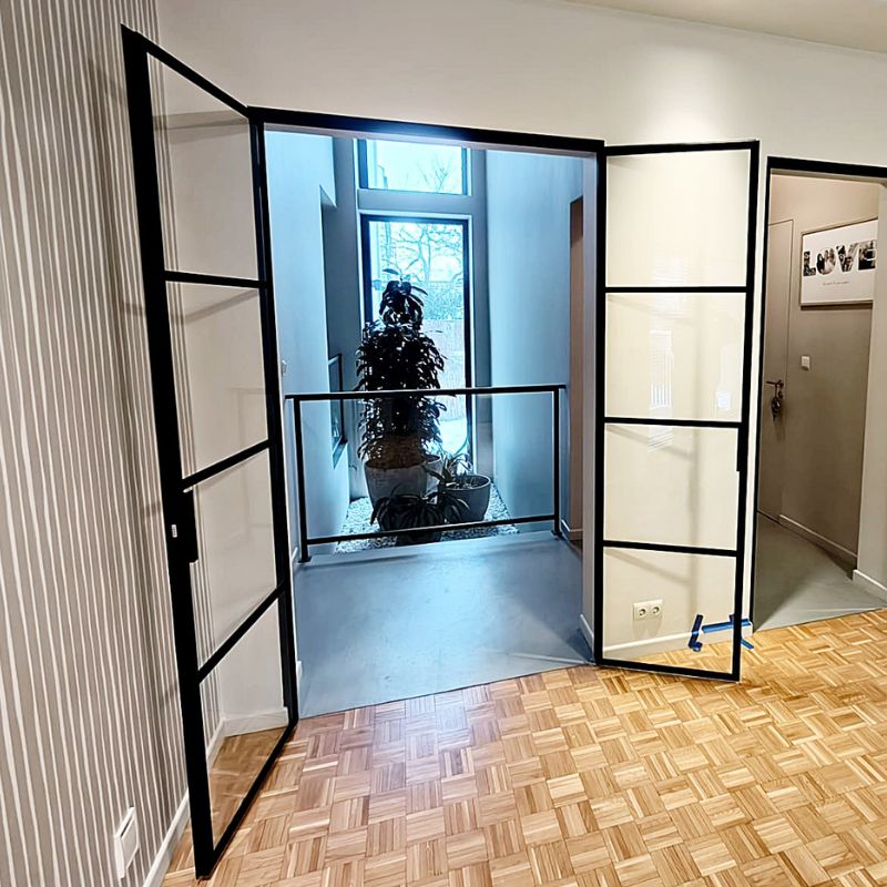 Drzwi podwójne stalowe loftowe z przeszkleniami